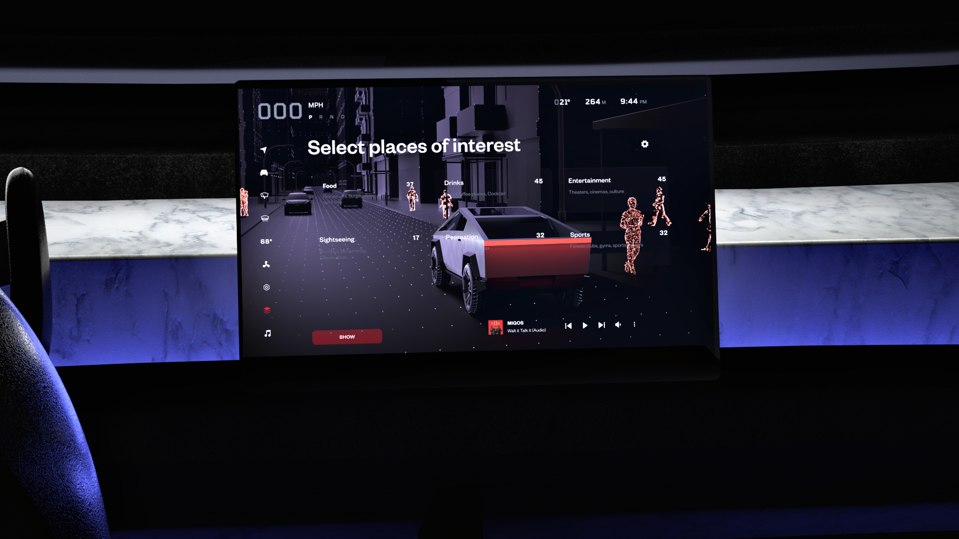 Here the UI concept created with Hero Labs for Tesla Cybertruck My role was to create all 3D, including the interior of Cybertruck and all 3D animation inside the screen